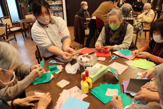 今日の午前中はお習字教室とクリスマスの飾り作りを行っていました。