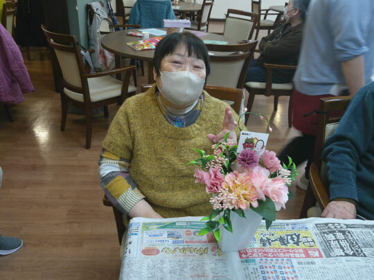 毎回とても好評ですが、今日は特に好評で次回も同じフラワーアレンジメントを作って下さるそうです。