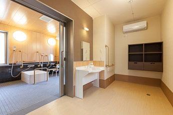 利用者の状態により個浴により自分のペースで入浴することも、機械浴により寝たまま入浴することもできます